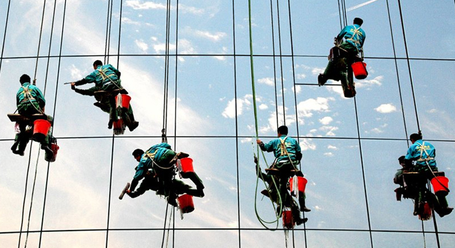 為了能夠確保員工的人身安全,煙臺(tái)德力保潔公司要求凡是參加高空外墻清洗的員工必須是年滿十八周歲的男性,并且受過專業(yè)的安全技術(shù)訓(xùn)練,擁有正式的專業(yè)證書才能工作。工人在工作之前不能飲酒,如果身體有任何的不適得不能去參加工作。